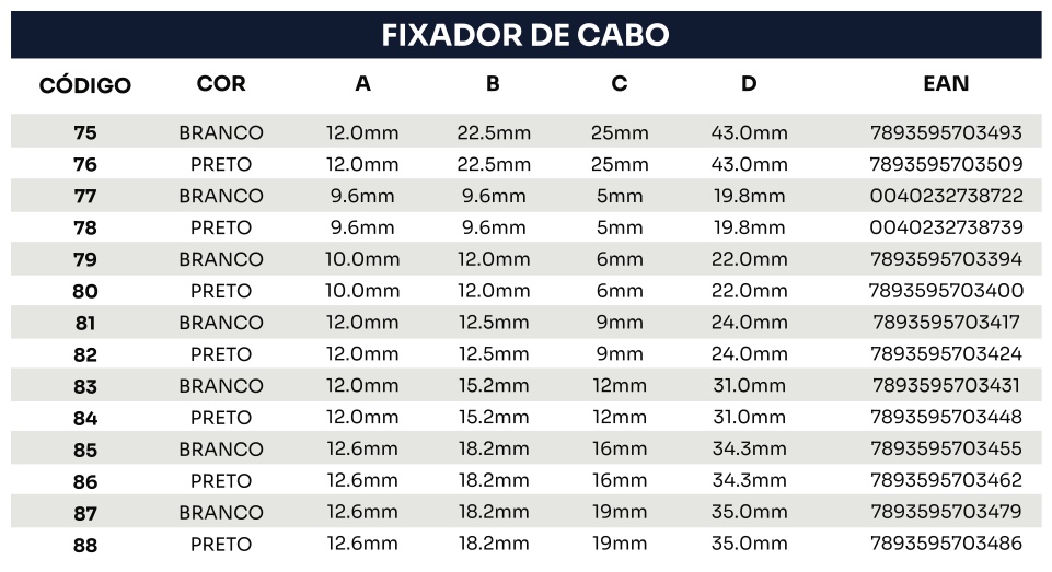 Uma solução prática e reutilizável para a fixação de cabos, canaletas e tubos. Seu design inteligente permite uma instalação e remoção fáceis, otimizando a manutenção e permitindo reajustes. Fabricado em Nylon 66,94v-2 com certificação UL, este fixador é resistente ao calor e conta com proteção UV.