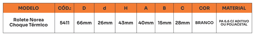Material: Poliamida 6.6 com aditivo ou Poliacetal.