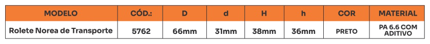 Rolete robusto para sistemas de transporte em noreas, garantindo movimentação eficiente e de baixo atrito. Fabricado com material de alta performance, é uma peça de reposição durável e confiável para manter a fluidez da sua linha de produção.
